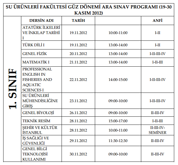 2012-2013 Güz Dönemi Vize Tarihleri (İstanbul Üniversitesi)